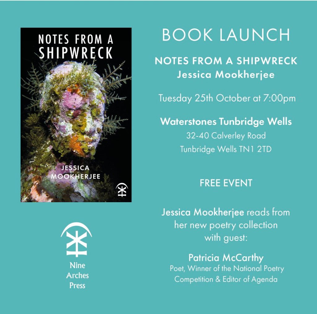 Prominent and critically acclaimed local poet Jessica Mookherjee, who featured at our festival this year, launches her latest collection, Notes From a Shipwreck, on October 25 at Waterstones in Tunbridge Wells.