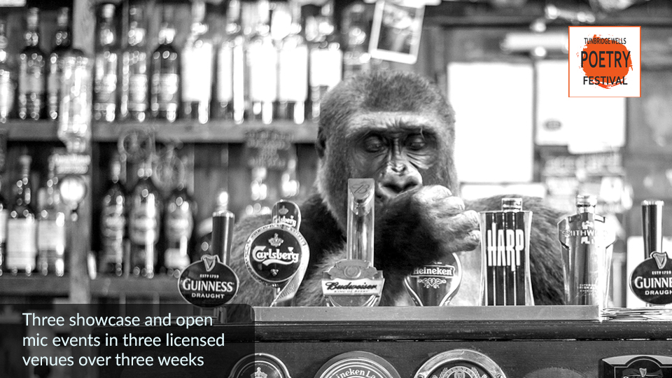 Poets and alcohol have a long shared history, and it seems only fitting that we should celebrate that association as part of our grassroots festival. Last year’s Poets in the Pub was a resounding success: so much so that we have decided to forget the double this time round and go straight for a treble top and bullseye finish!