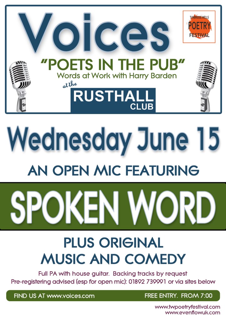 Wednesday June 15th sees our pub poets happily ensconced in the warm and friendly bosom of Rusthall Club. This venue is at the hub of Rusthall village life and we are delighted to introduce slam winner AP Staunton as headliner alongside our guest MC, local slam favourite Harry Barden, to its wonderful clientele. From 7:00pm